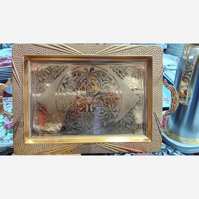 این سینیها با ظاهری زیبا و درخشنده، به میز و سفره شما جلوهای مجلل میبخشند و سرو غذا را به تجربهای لذتبخش تبدیل میکنند.. نگ طلایی درخشان و ظاهری چشمنواز، به سفره شما جلوههای مجلل و لوکس میبخشد.