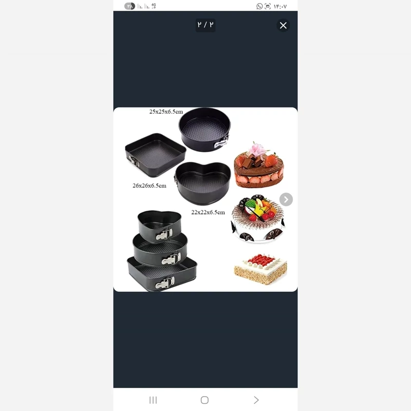 قالب کیک دومدل میتونین کیک بپزین جنس قالب خوب ومناسب همراه باقفل. رنگ مشکی قیمت اقتصادی وبه صرفه. کیفیت بی نظیر. طرح قلب نداره. ارسال به سراسرکشور.