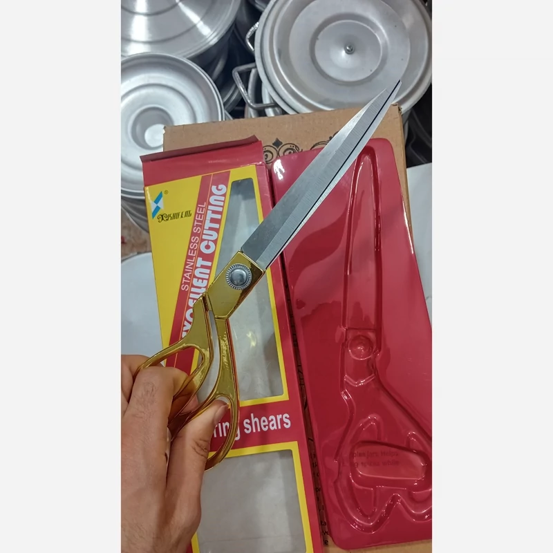 قیچی تیزوبرنده خارجی دم های تیز جنس اهن تمام مناسب خیاطی وسایرکارها کیفیت عالی قیمت مناسب رنگ طلایی ارسال به سراسرکشور